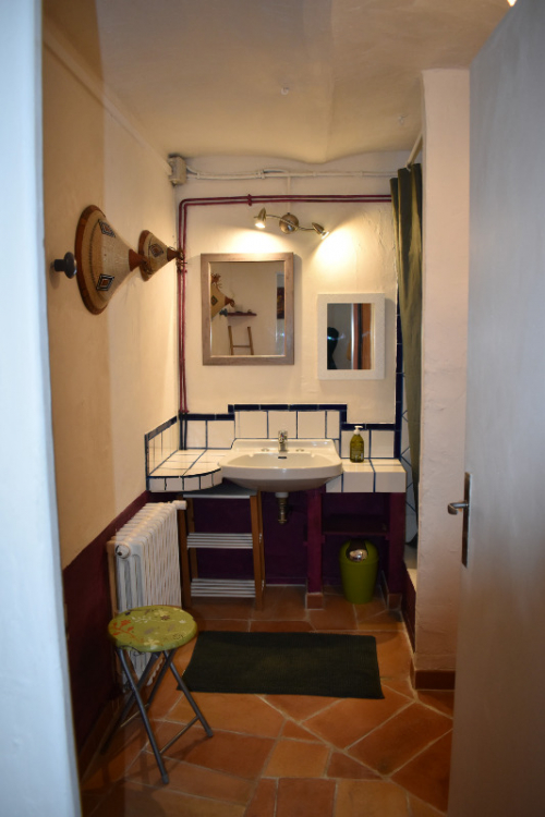 Salle d’eau moderne (eau chaude produite par panneaux solaires).