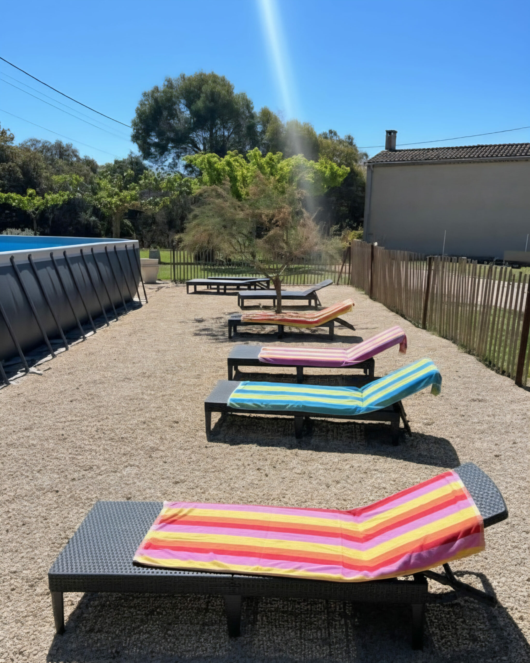 Aujourd’hui, le domaine bourgeonne. Un verger naissant promet des fruits gorgés de soleil, et pour vos instants de fraîcheur absolue, une vaste piscine au sel (5x10m) vous attend, tel un miroir d’eau posé sur la campagne.
